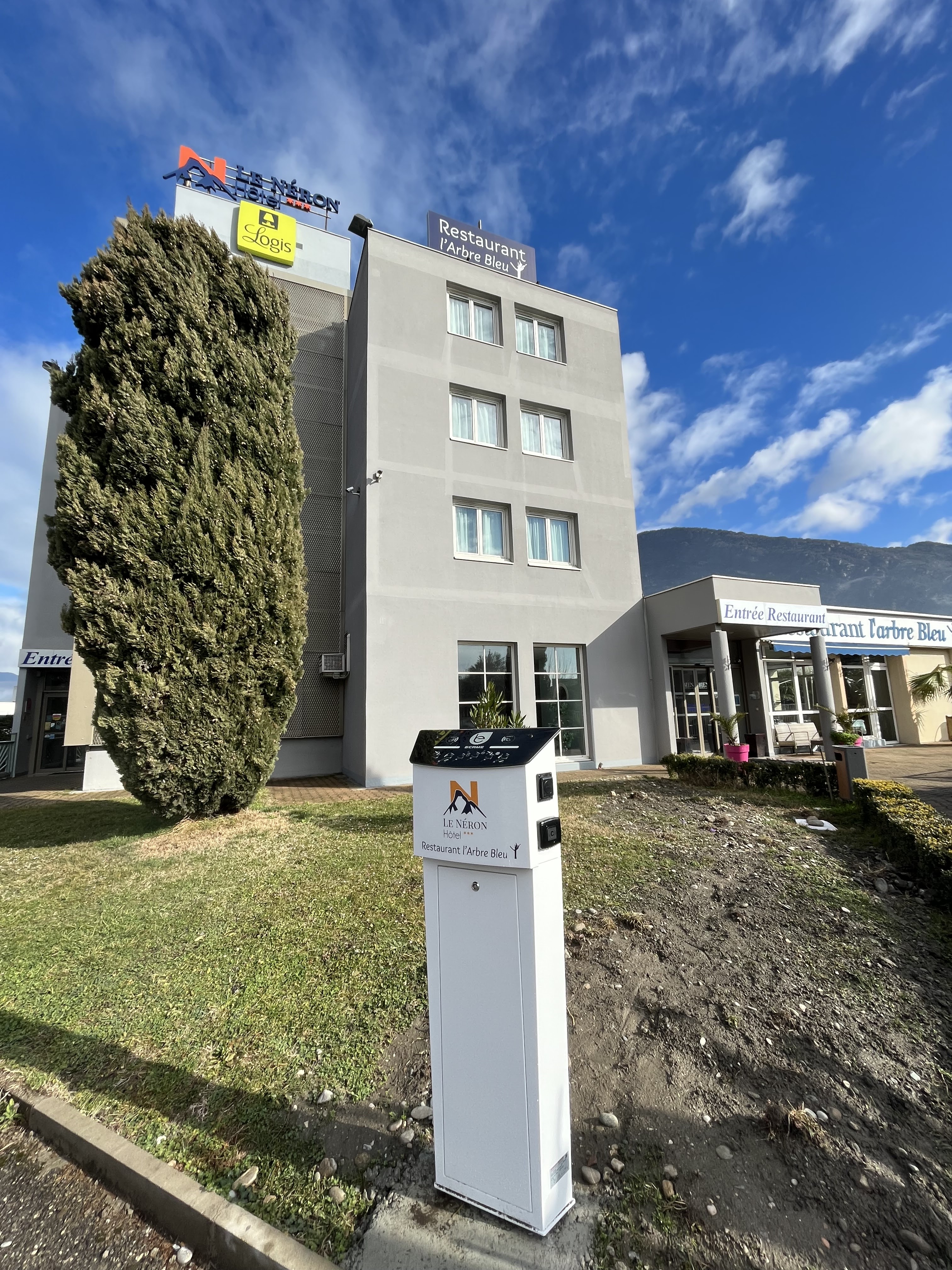 Merci pour cette belle réalisation ! Nous sommes fiers de notre borne de recharge électrique, logoté au nom de notre hôtel-restaurant. Merci à la société Ecla Technologie pour son professionnalisme et ses conseils. Sincèrement, L'Equipe de l'Hôtel Le Néron & Restaurant l'Arbre Bleu